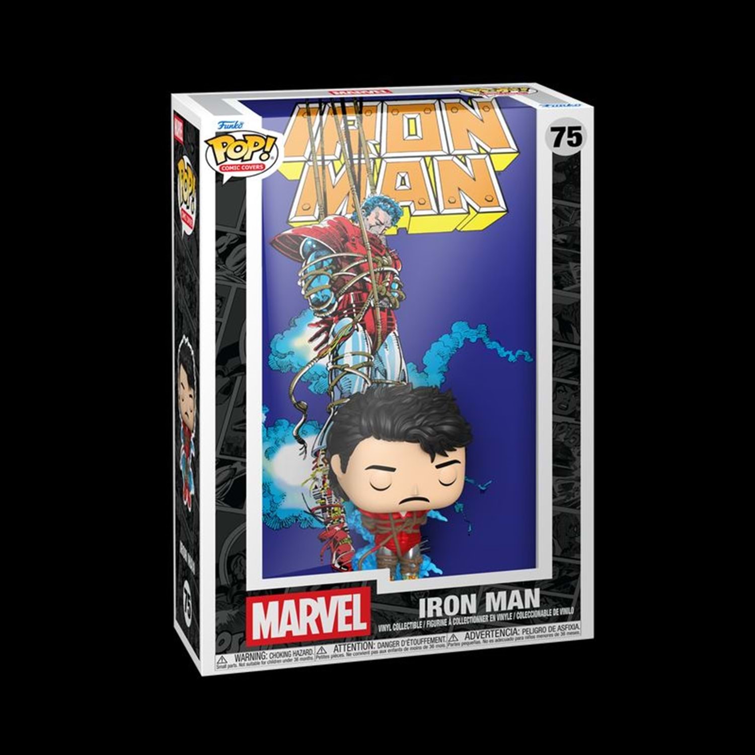 POP! Iron Man is here to face his worst nightmares in your Marvel collection! This POP! Comic Cover features POP! Iron Man suspended against a background of the Iron Man #232 cover. Vinyl bobblehead is approximately 4.6 in (11.7 cm) tall. POP! collectible is adhered to the base and backdrop to ensure display integrity. Approximate dimensions of protective case: 7 in W x 10.8 in H x 3 in D (17.8 cm W x 27.4 cm H x 7.2 cm D).