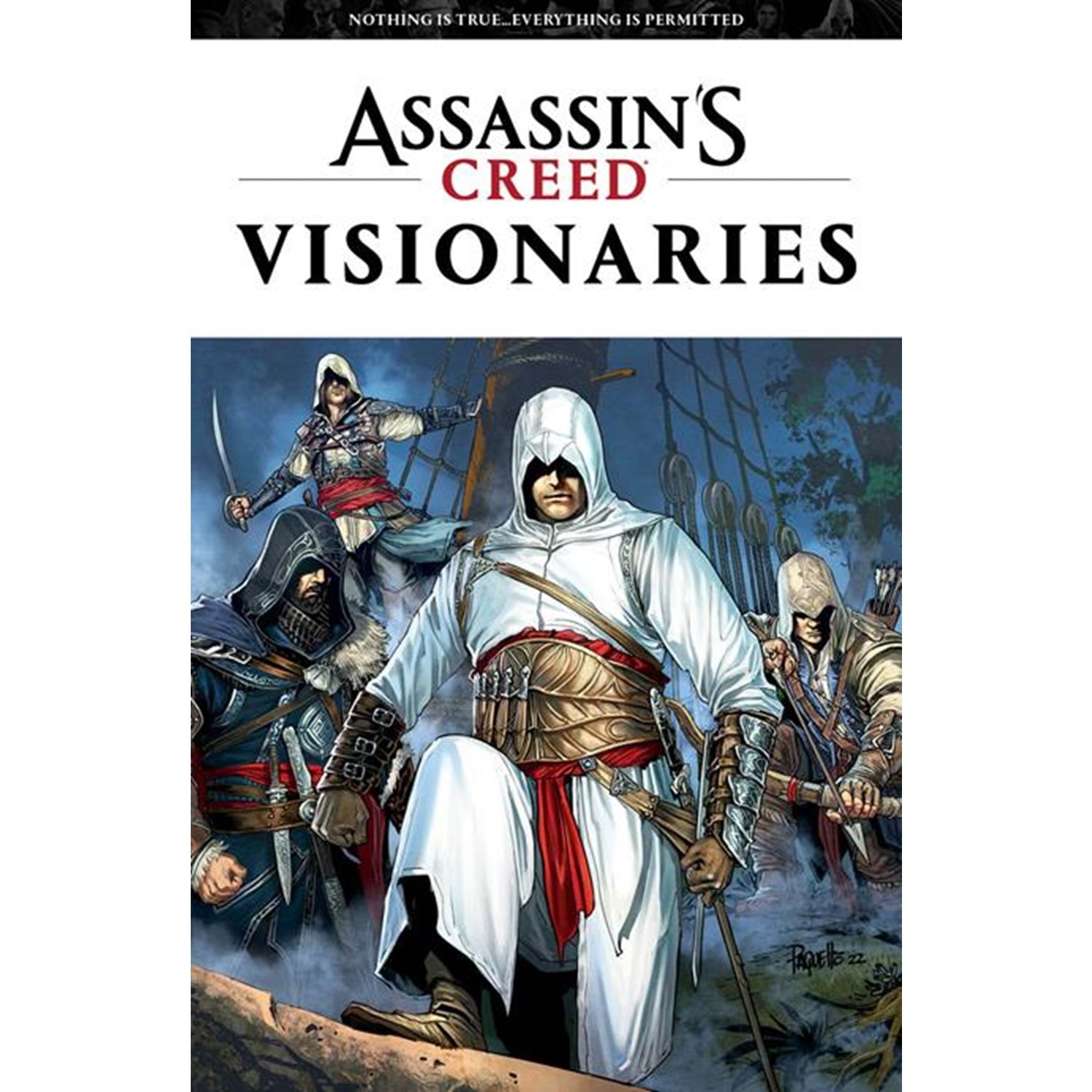 Yanick Paquette, the Eisner-nominated, Shuster Awards Winner, and #1 New-York Times best-selling comics artist known for Batman, Swamp Thing, Wonder Woman: Earth One, INCAL, and more provides this cover for Volume 1 of Assassin’s Creed: Visionaries. All-new assassins imagined by top comic creators from around the world. Discover new stories and artwork inspired by the Assassin's Creed® universe and beyond: from Ancient Egypt to the American Civil War, all the way to a dystopian, cyberpunk future and more!