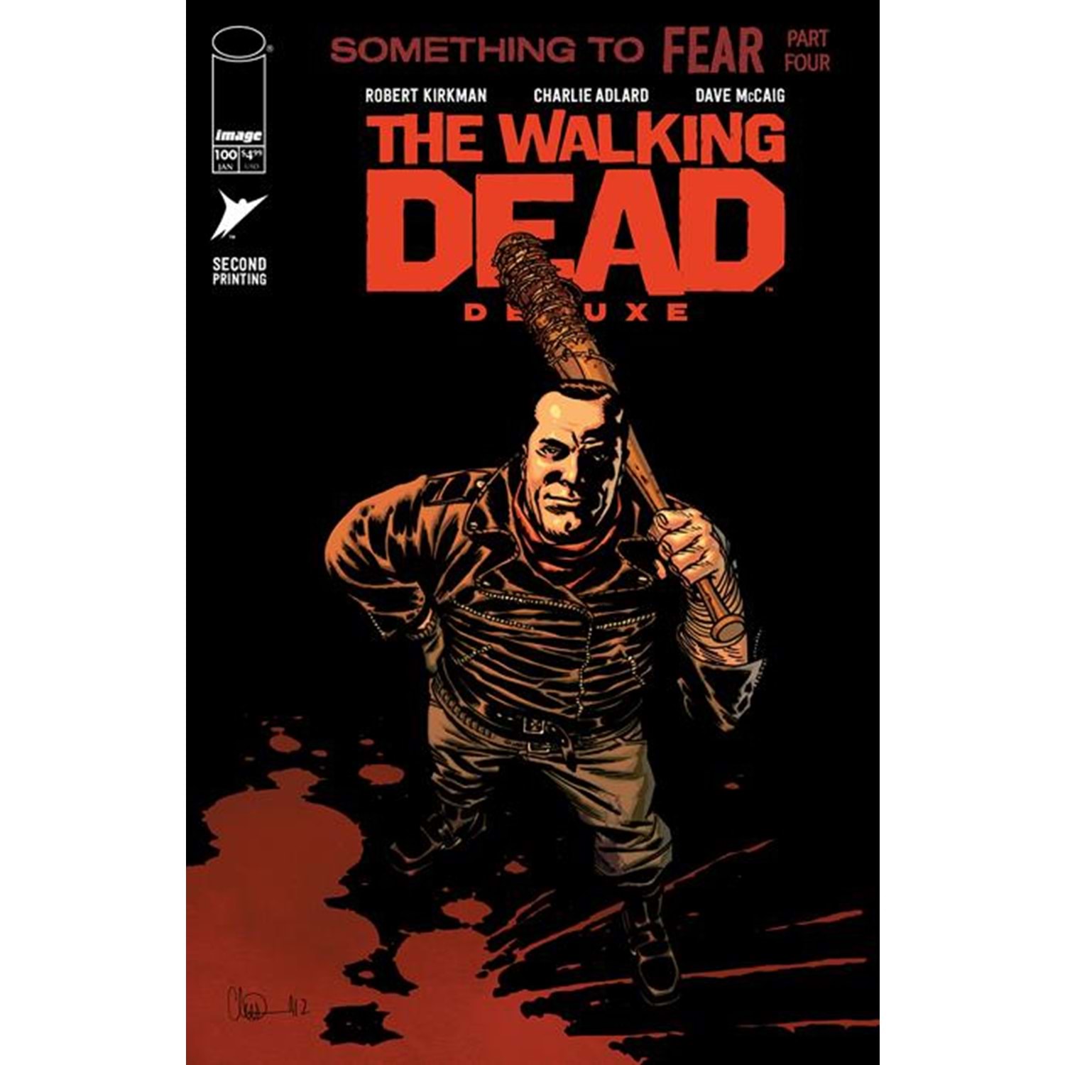 "Something to Fear" Continues! This extra-sized chapter contains one of the darkest moments in Rick Grimes' life, and one of the most violent and brutal things to happen within the pages of this series-finally in color! This deluxe presentation in stunning full color also features another installment of Cutting Room Floor and creator commentary.