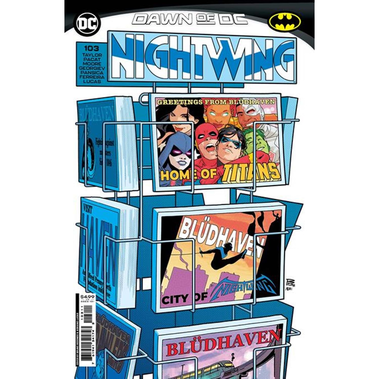 Who is the Grinning Man, who's always grinning no matter what he's doing, even when he's murdering people, and what kind of deal did he make with Neron? Nightwing and the Titans better figure that out soon before they lose one of their team members... Then, in the backup, Nightwing continues his lessons mentoring Jon Kent, a.k.a. Superman, and this time it's about using your detective skills instead of your fists.