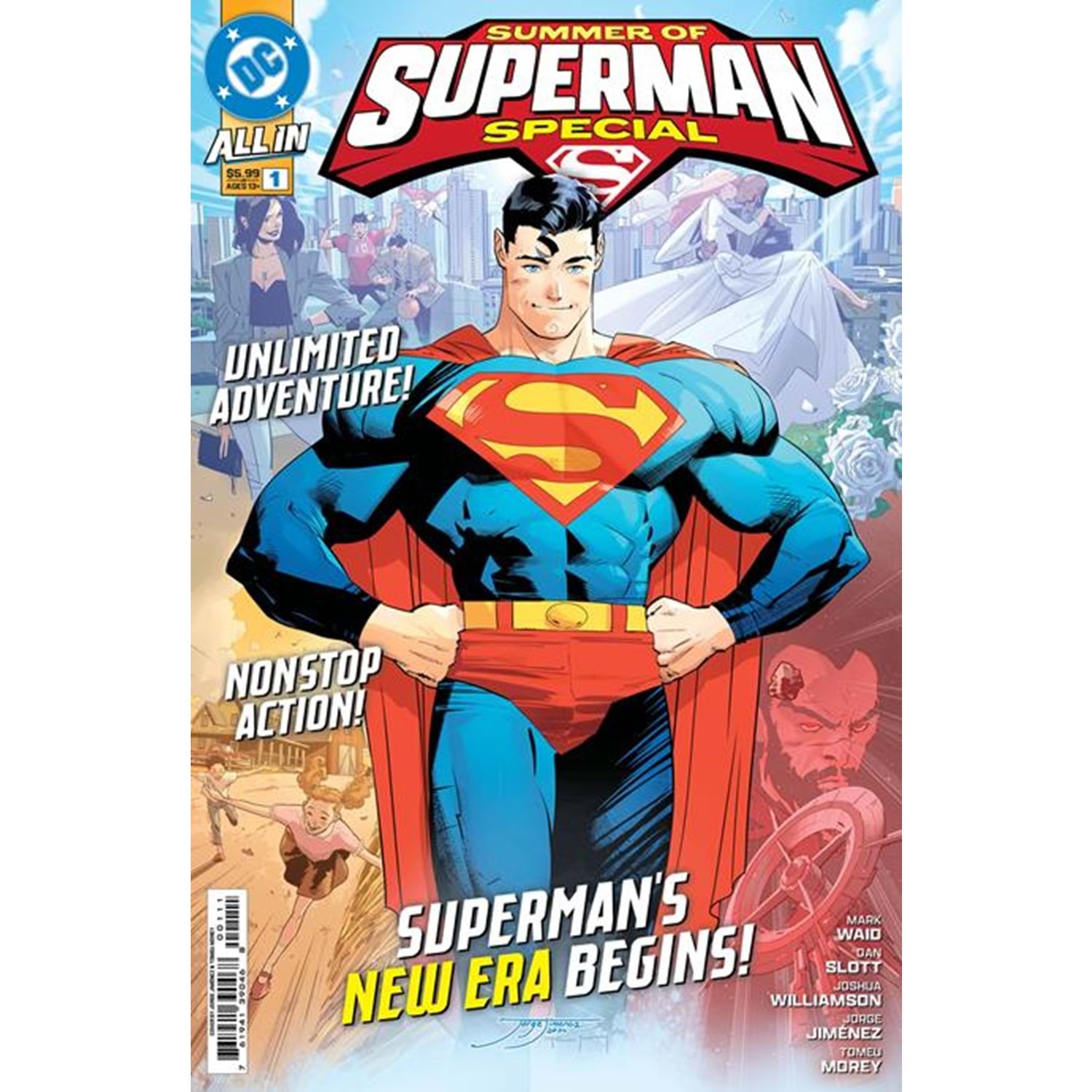 The Man of Steel and his universe of friends, family, allies, and rogues is in for some big changes, and it all starts in the Summer of Superman Special! Brought to you by Superman series architects Joshua Williamson (Superman), Mark Waid (Superman: Action Comics), and (making his grand entrance to the world of tomorrow) Dan Slott, this special oversize issue will set the stage for all the major events exploding throughout the Superman titles! When John Henry Irons and Lana Lang take their vows, everyone turns up for the big day--but trouble is brewing on the horizon, as threats from the past, present, and future kick off major new conflicts for the Superman Family. Brought to stunning life by the incomparable art of Jorge Jimenez (Batman, Super Sons), the Summer of Superman Special is the ground floor to the most exciting action imaginable in 2025!