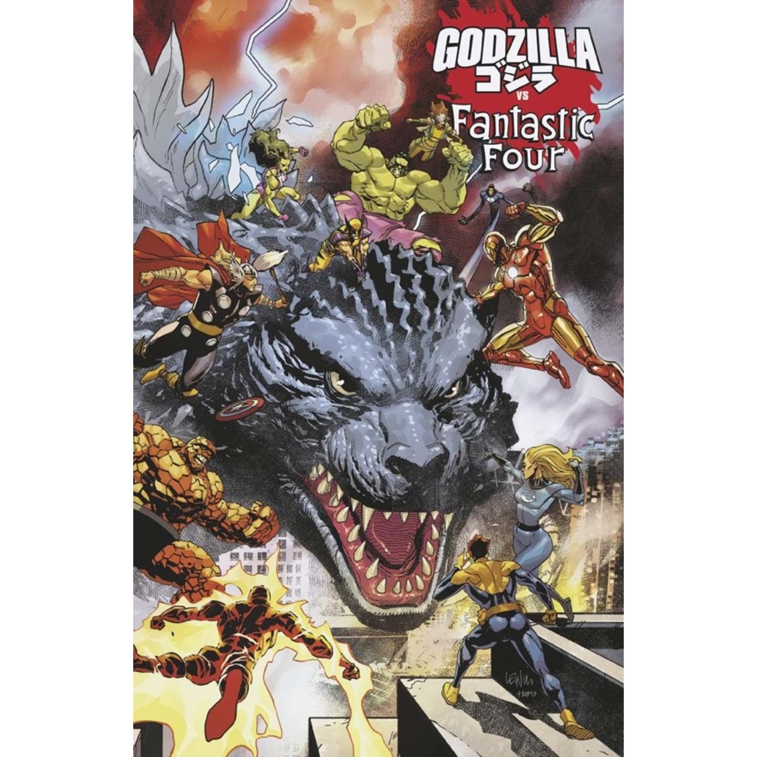 The start of six sensational, action-packed issues with Marvel Heroes battling the King of the Monsters from its many different eras! How will GODZILLA'S lore mix with the MIGHTY MARVEL UNIVERSE? Find out as history is twisted when icons like the Fantastic Four, Spider-Man, Hulk, X-Men, and Thor face off against one of the greatest monsters of all time!